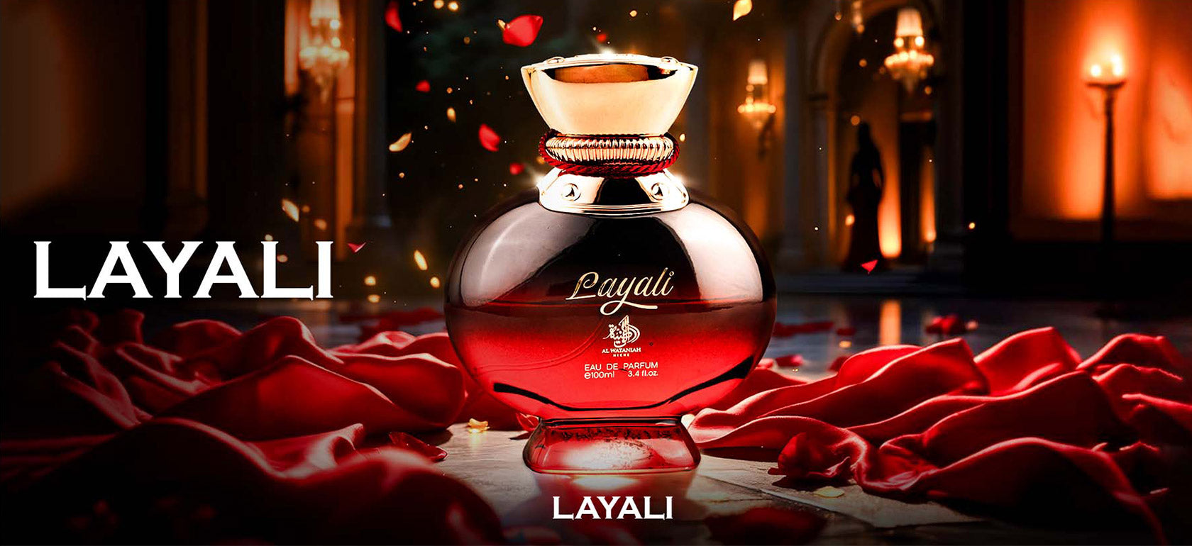 Exotic, gourmand, and warmly spiced, LAYALI opens with juicy peach, guava, nectarine, and ginger. A heart of amaretto, caramel, and cardamom melts into a base of vanilla, dry amber, and musk, leaving a rich, captivating trail that lingers like a luxurious night in the desert.
